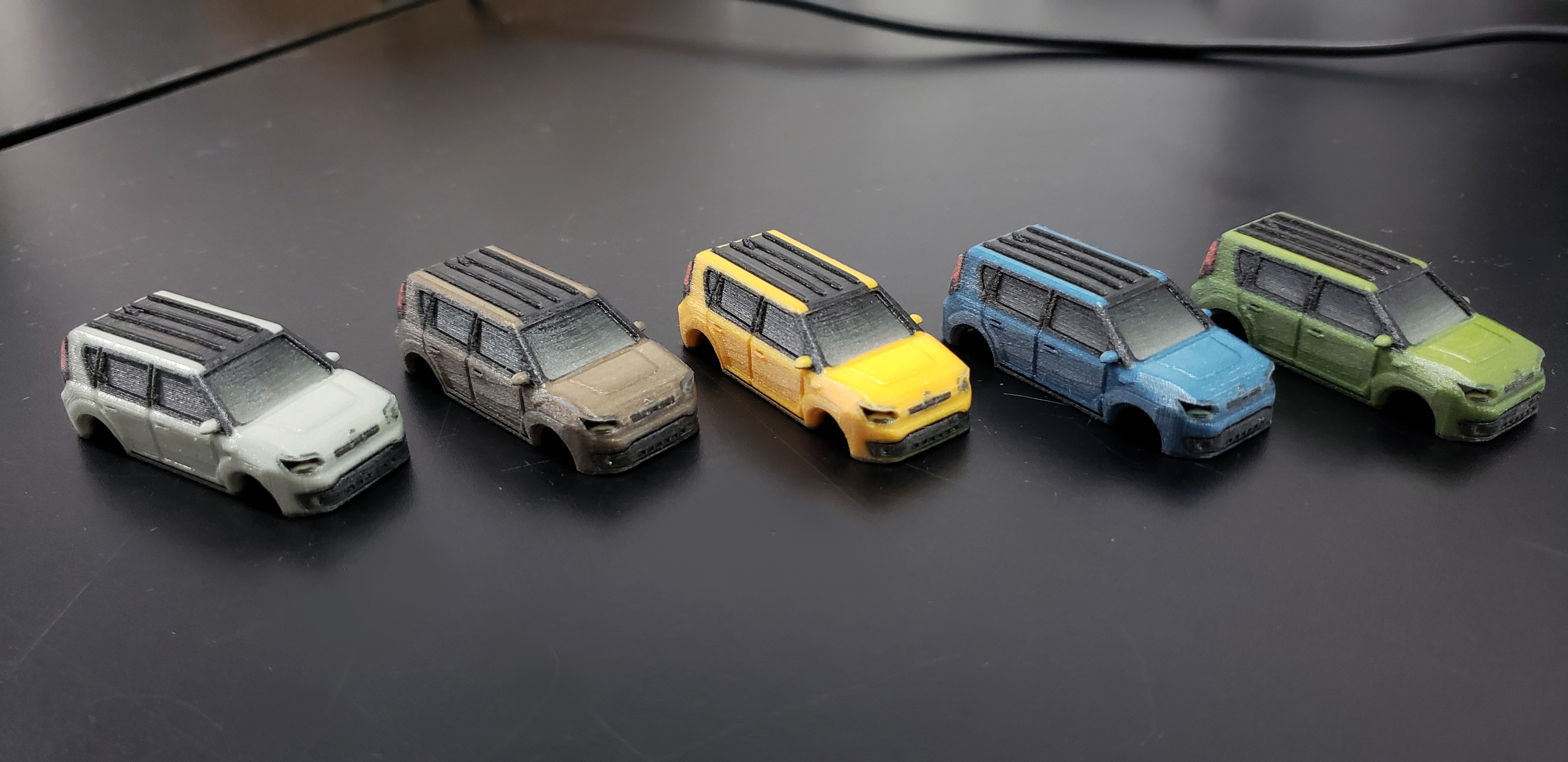 3D Printed miniature '97 Acura Integra and 2012 Kia Soul. Created for Little Canada's fleet of fully motorized miniature vehicles with functional lights, wheels, chassis, etc.