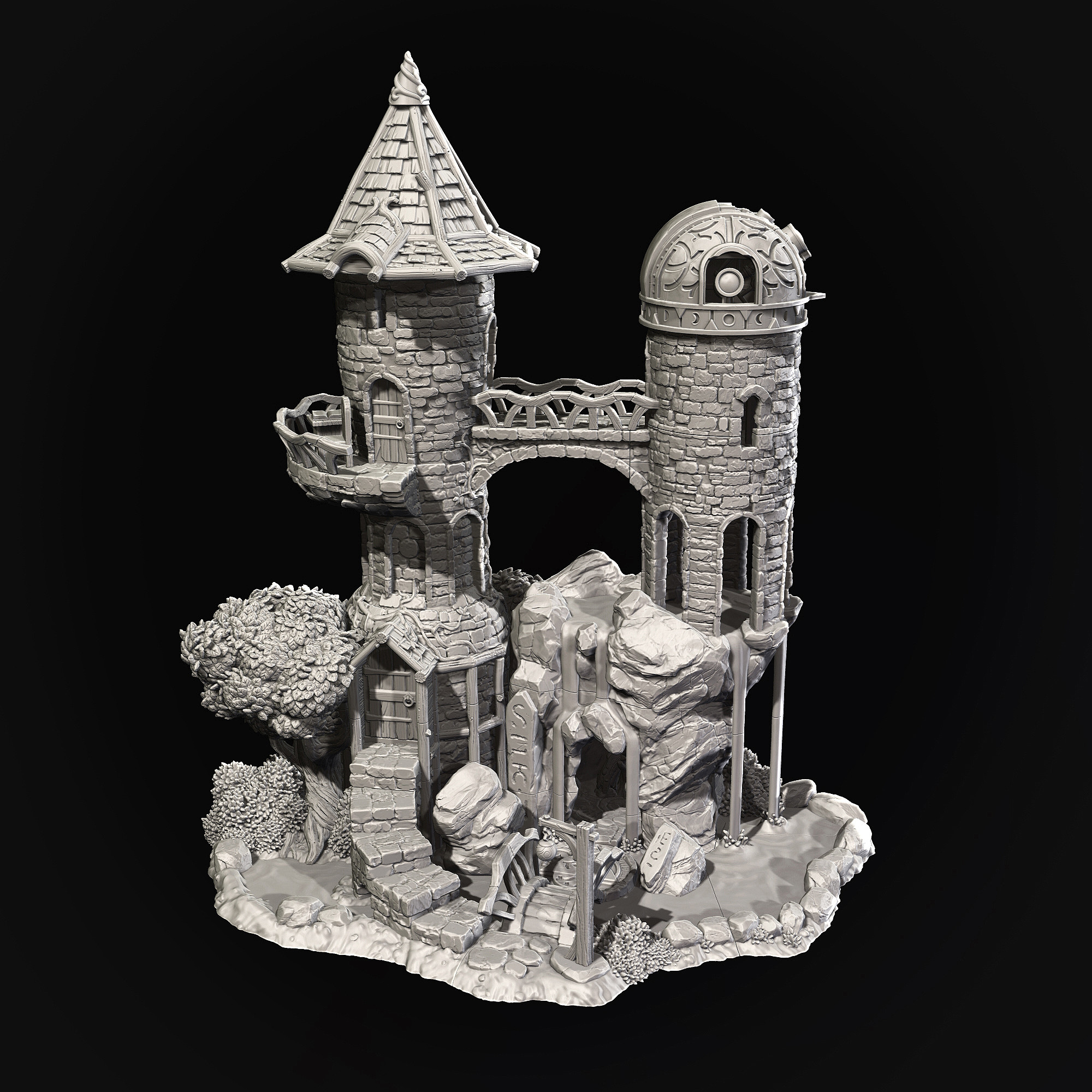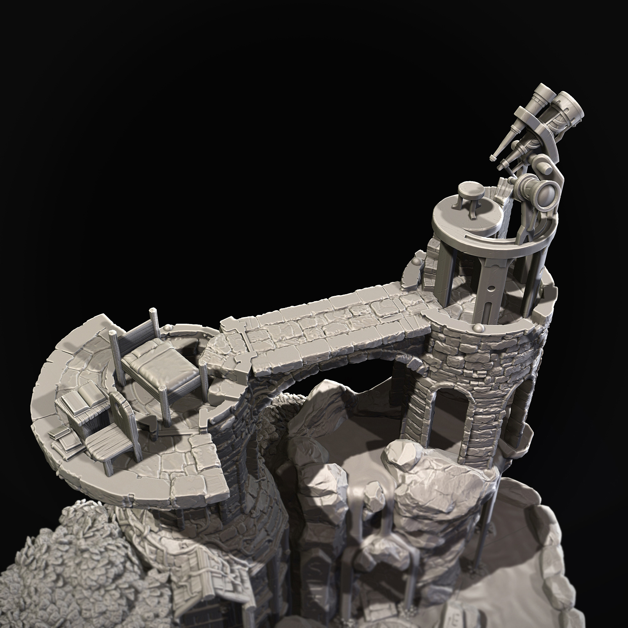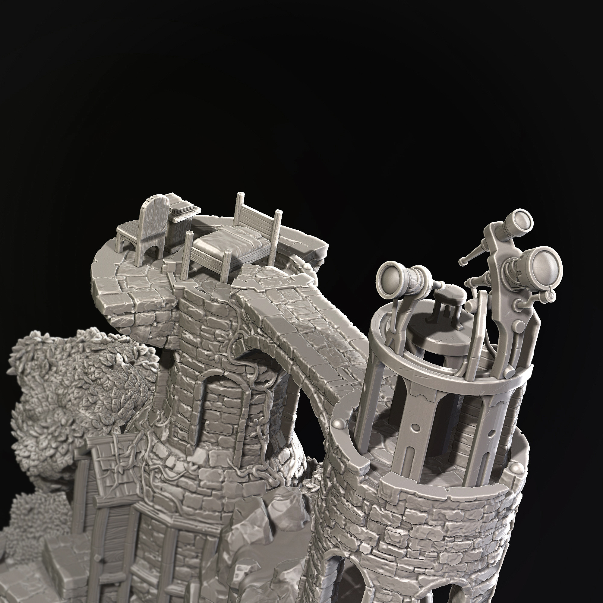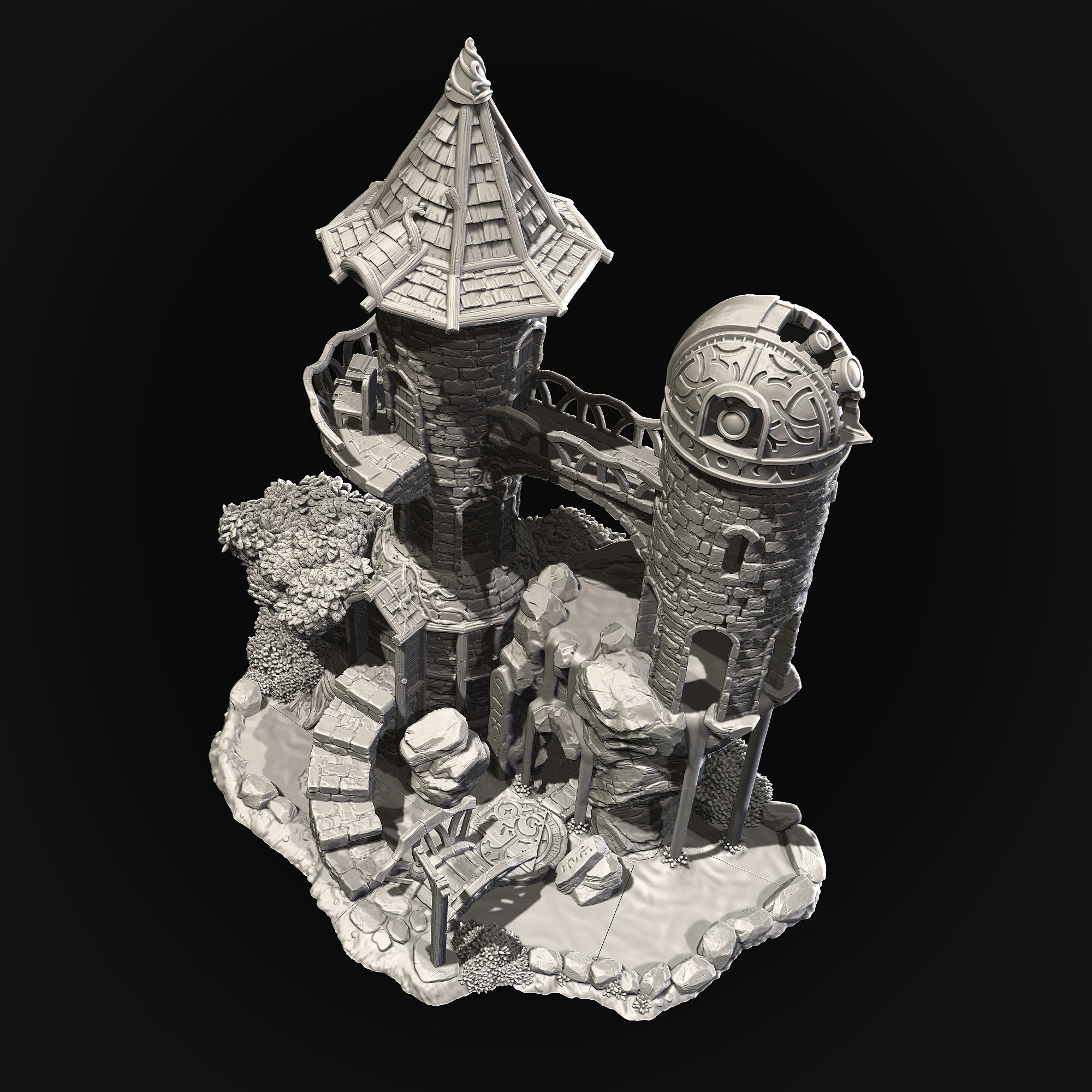 Miniature observatory tower in 32mm scale. Created for Taranwyth, a release by Archvillain Games: