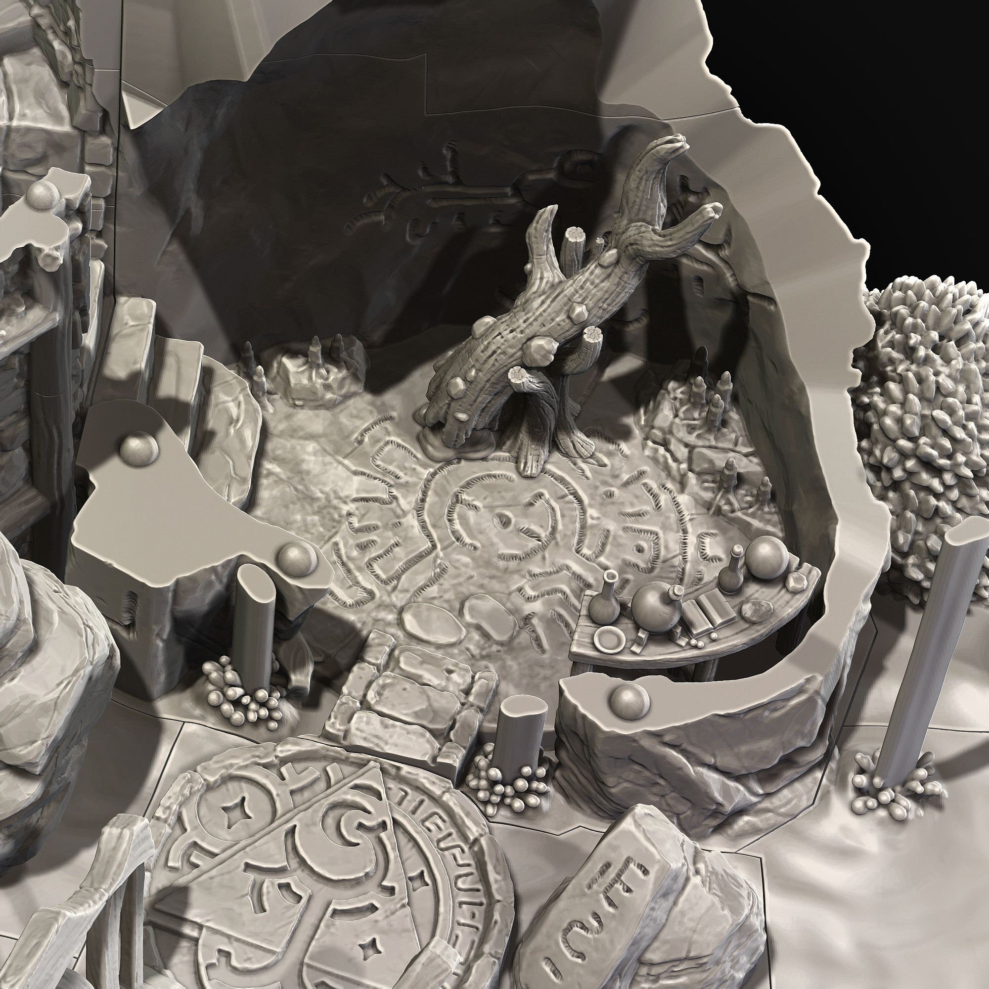 Created based on concept art, also cut and optimized model for easy 3D printing and physical assembly
