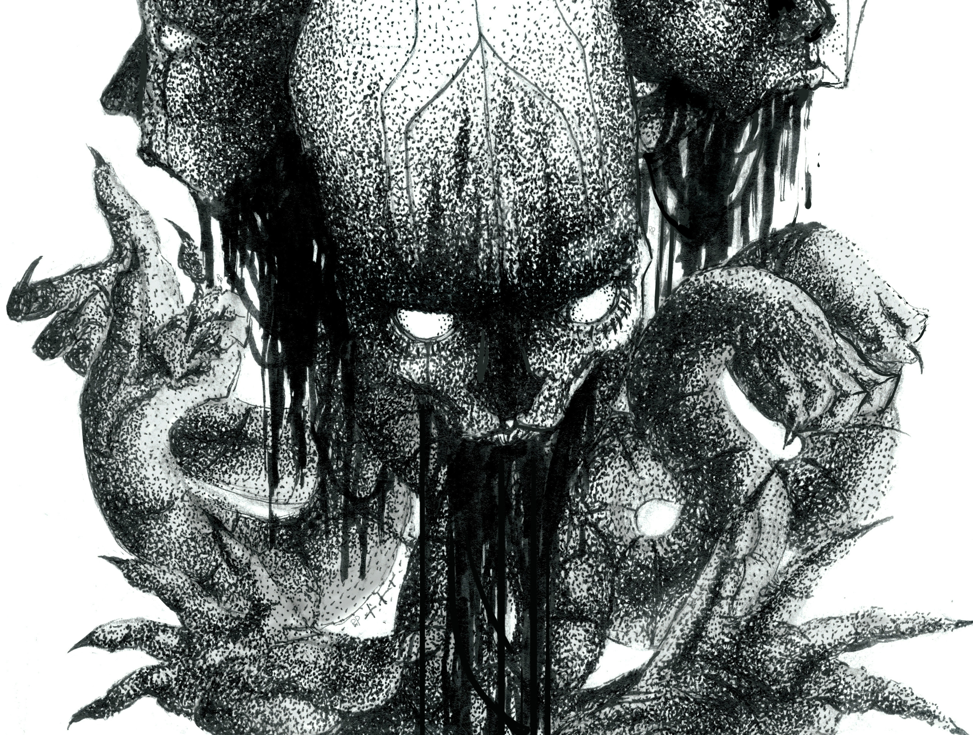 Concept art and creature design for Cerberus, the hound of Hades. Ink on paper.